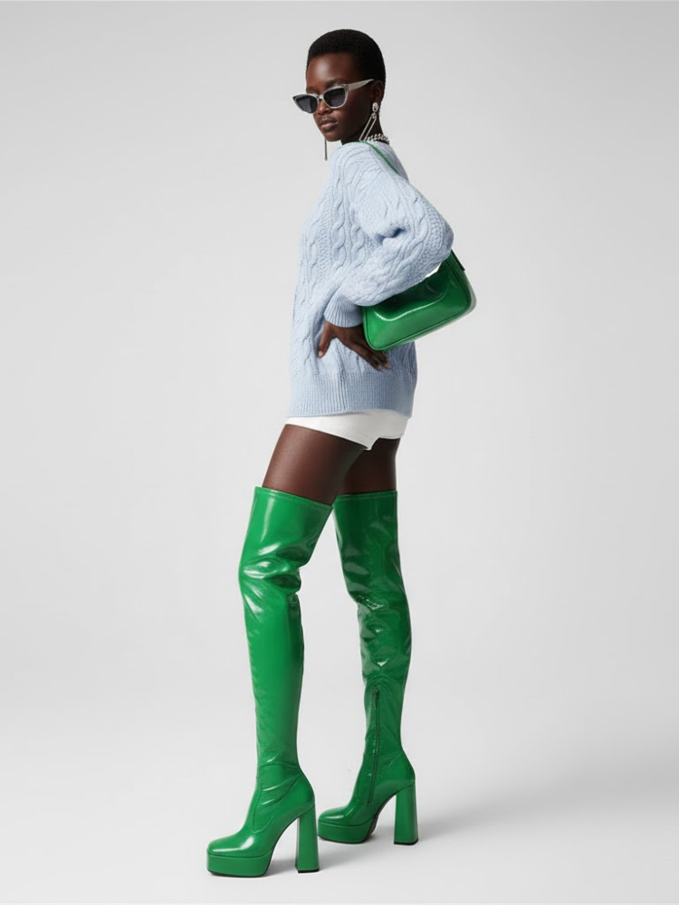 This cardigan features a cropped and oversize silhouette, crafted from a chunky cable knit in a delicate light blue or baby blue color. The material is voluminous and soft, combining warmth with a sweet and chic style.